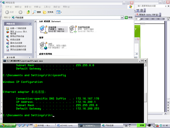 输入完后会通过ACS把用户名密码发到DC上去验证,这时可以在交换机上debug radiux看到认证过程的信息。最后验证成功以后,会分配到Normal_Vlan的地址172.16.200.1